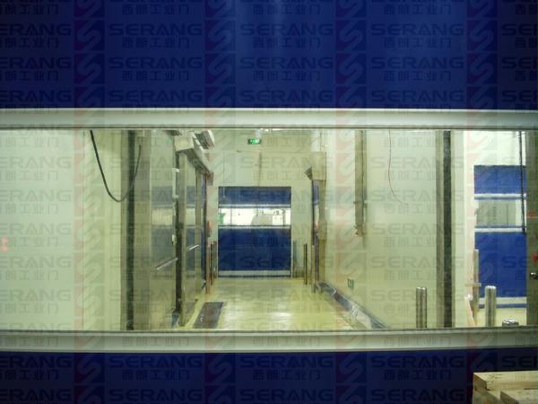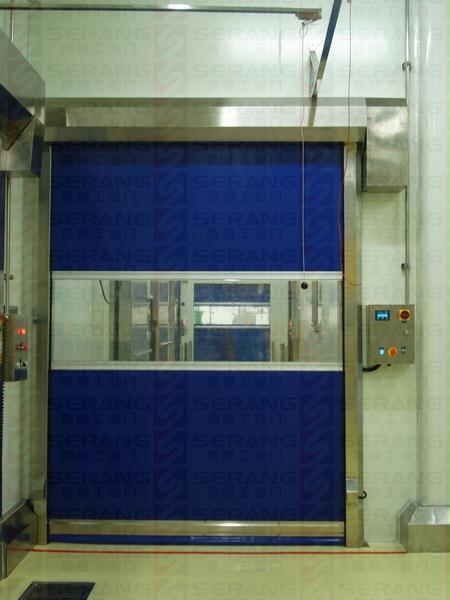 下圖為:食品車間成人午夜免费APP不鏽鋼快速門,該快速門采用德國品牌拉繩開關、品牌紅外電眼保護係統和304優質不鏽鋼精工處理以及高品質的不鏽鋼配重,還有成人午夜免费APP門業自主開發的帶有人機界麵顯示的控製係統。