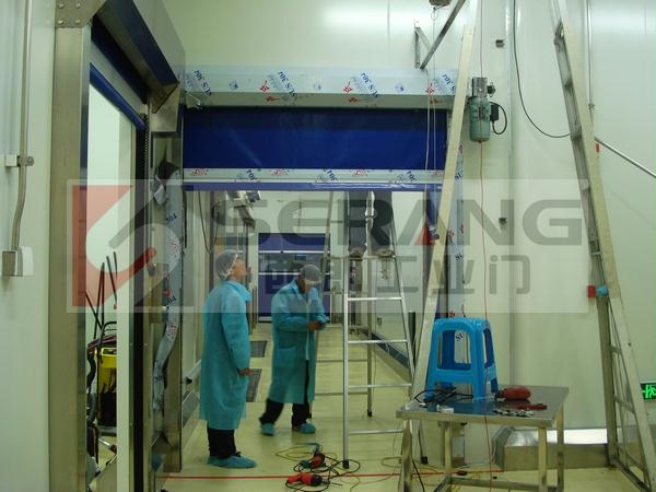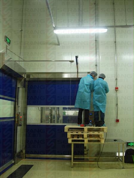 下圖為:食品工廠不鏽鋼快速門安裝現場
