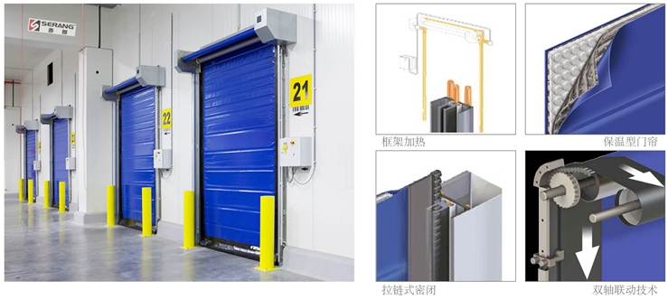 減少換氣、節約能源適合冷藏庫的SERANG冷藏庫專用門能夠使車輛快速進出冷藏室,減少溫度變化。良好密封,減少冷空氣損耗、節約能源。快速冷藏庫門上的隔熱門簾能夠減少冷凝和結冰。在溫暖的外部溫度和寒冷的內部溫度之間形成很大界限。減少結冰、避免故障時間該高性能冷藏庫專用門的側門柱上的低耗電加熱電纜有助於減少結冰,避免故障時間。自修複門簾保證門的長使用壽命。 |